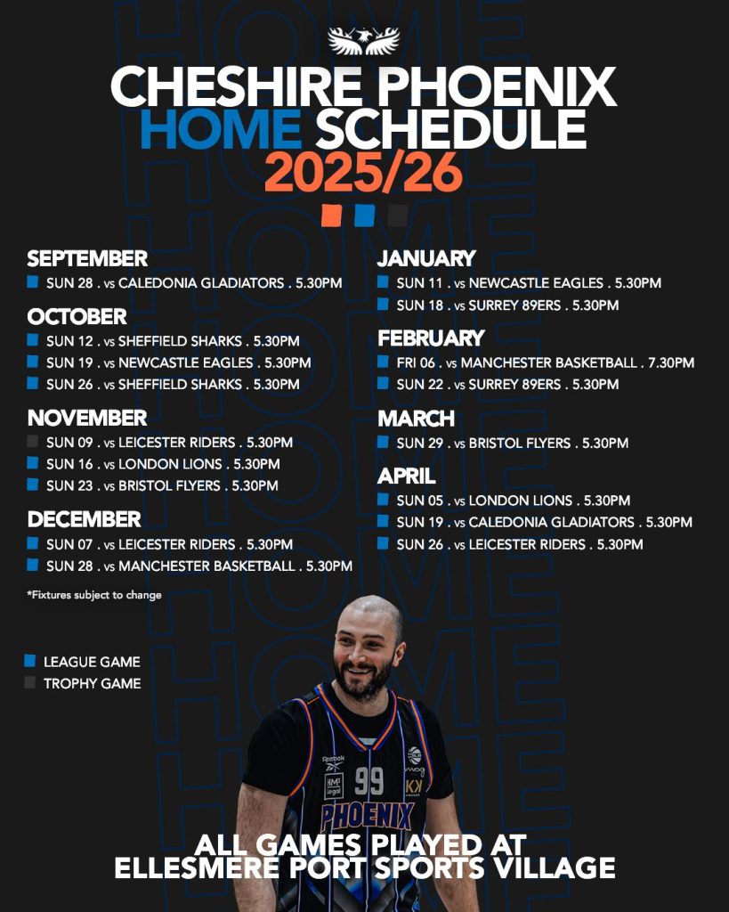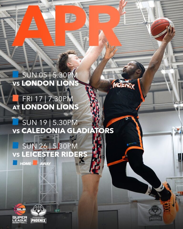 Make sure you never miss the next game by keeping track of the Cheshire Phoenix fixtures, both home and away. Guarantee your seat court side by getting your match tickets online before the game.